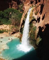 The ever-popular Havasu Falls camping area is clean and well-equipped, with plenty of space for tents and hammocks.