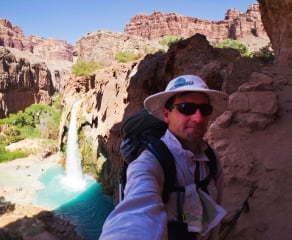 Me (Michael), reading the latest edition of the great Havasupai Guidebook