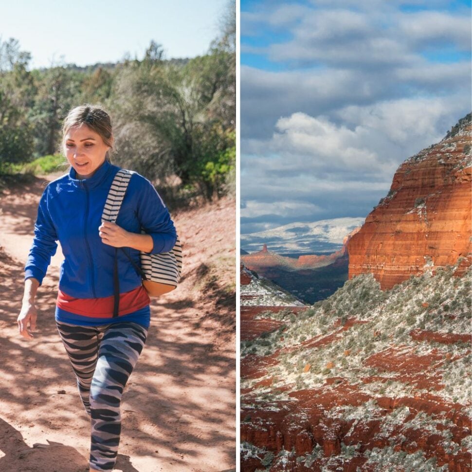💡 During February in Sedona, we start our days early and are dressed in layers with hats, gloves, and a packable down jacket. Later, we shed layers and end up in our leggings and long-sleeved shirts by early afternoon. We are from a cooler region and don’t think the 40-degree morning temps felt as cold as 40°F at home.